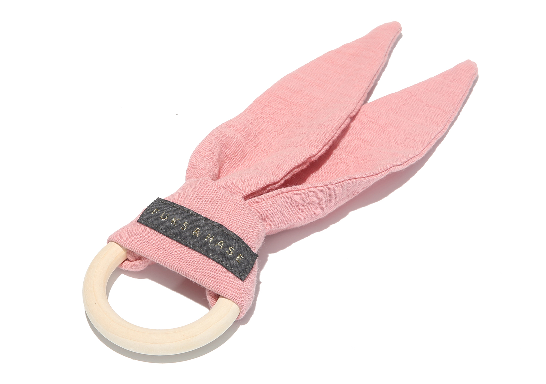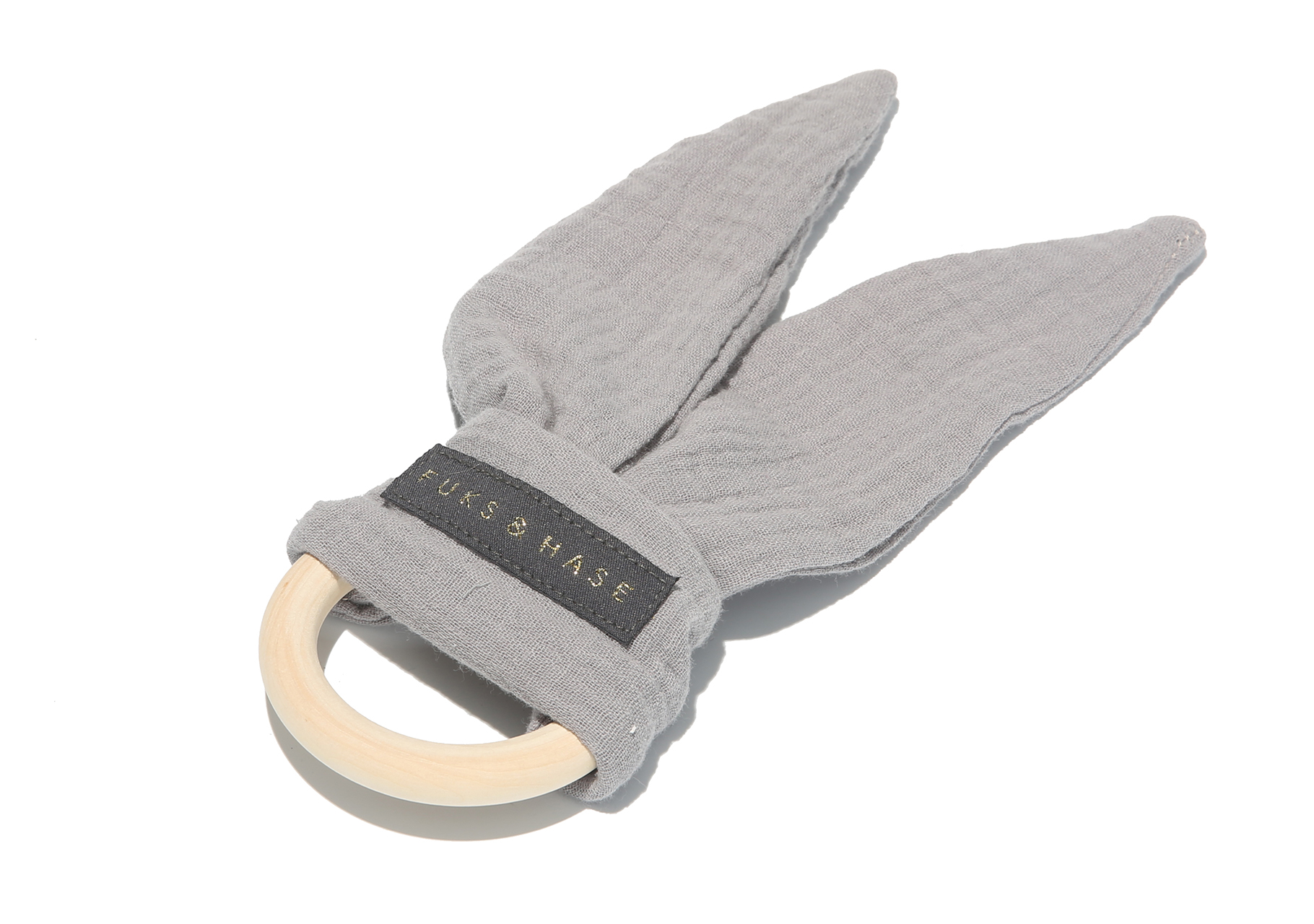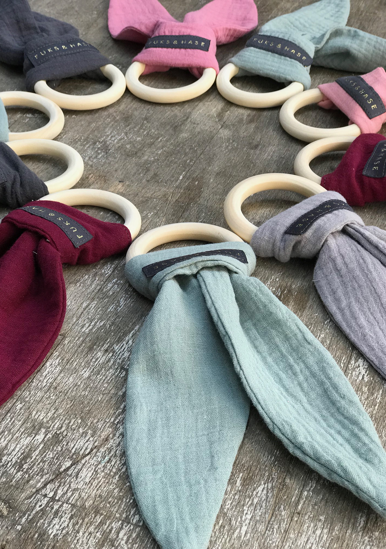 Was bei FUKS & HASE natürlich nicht fehlen darf ist dieser süße Hasen-Greifring für Babys.