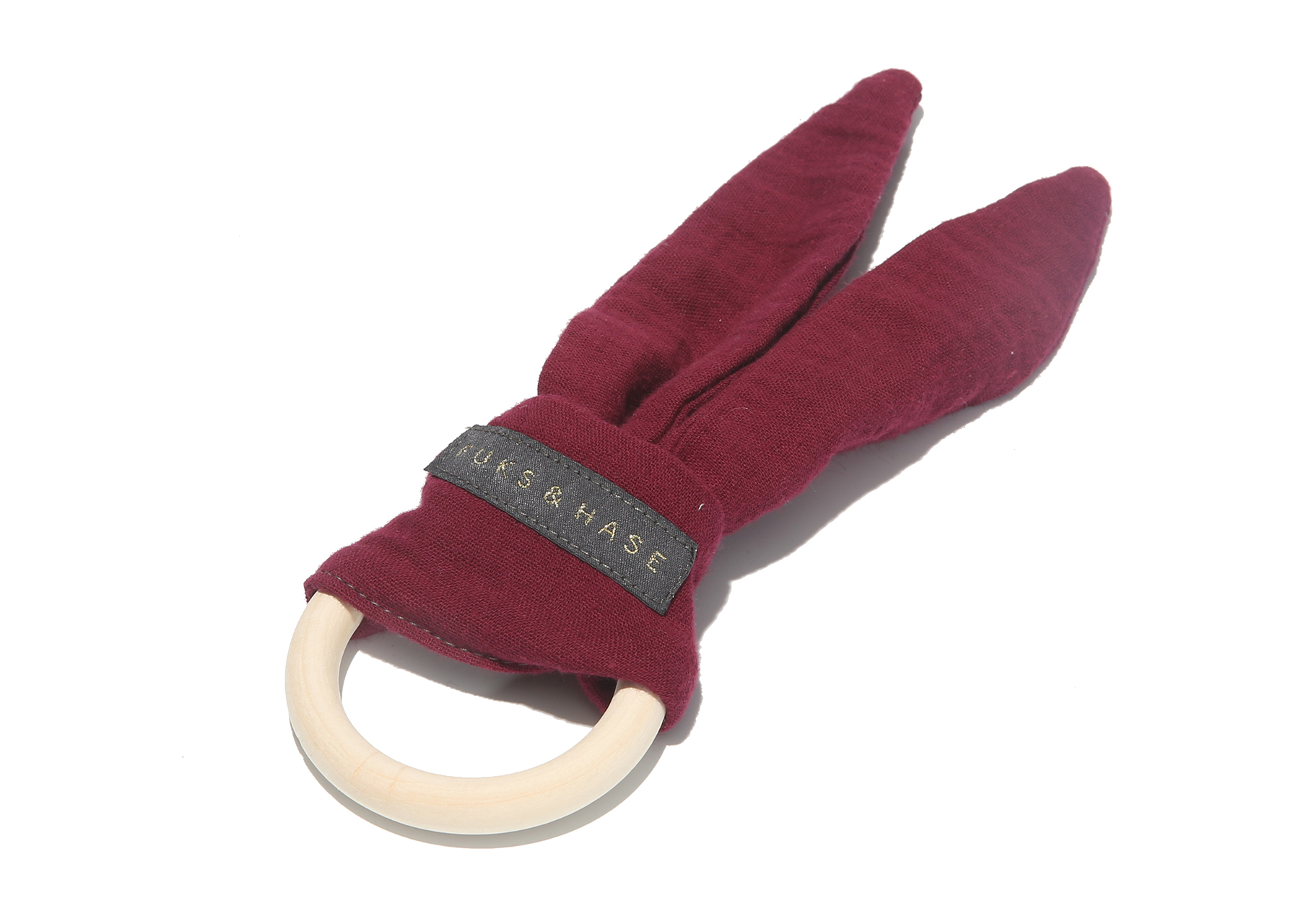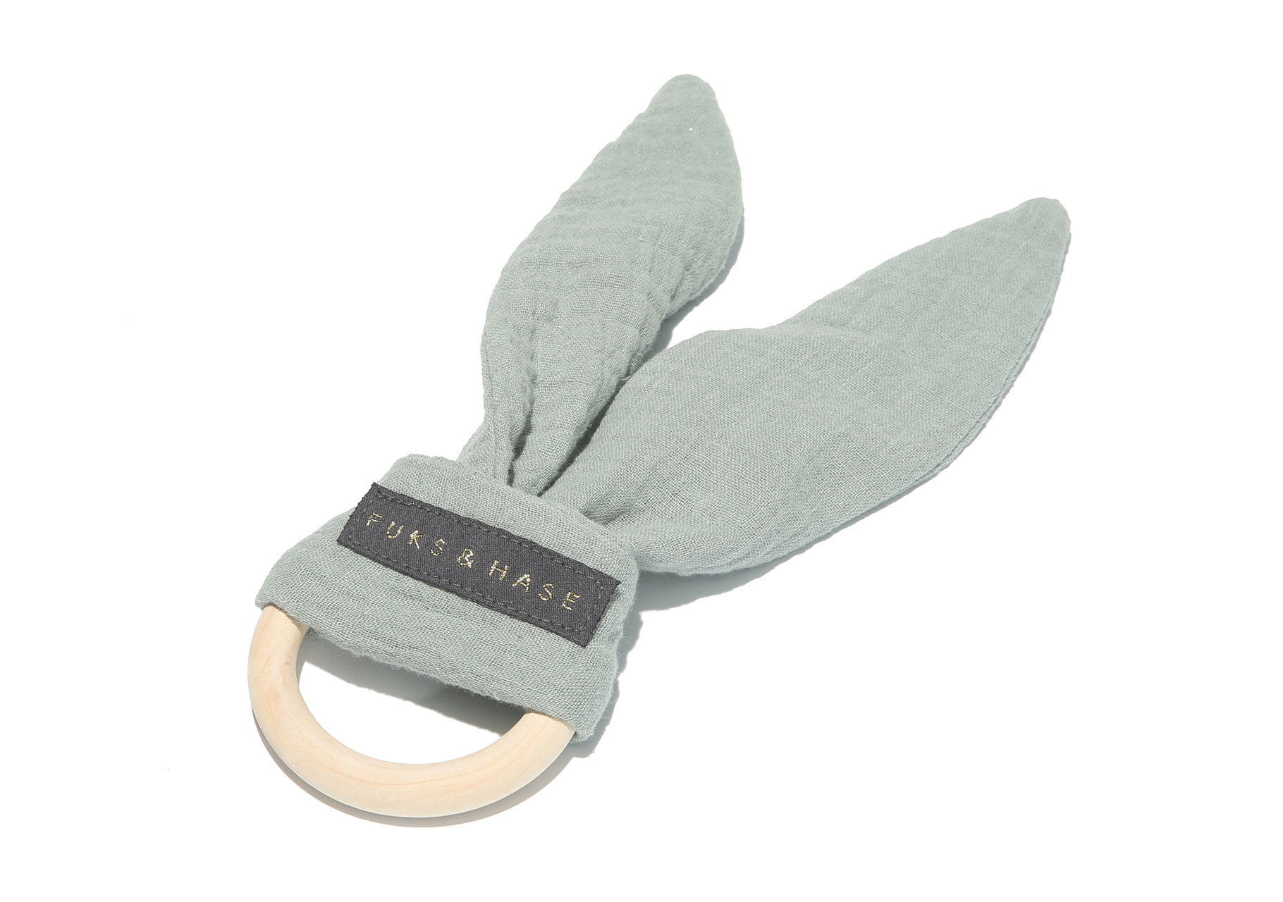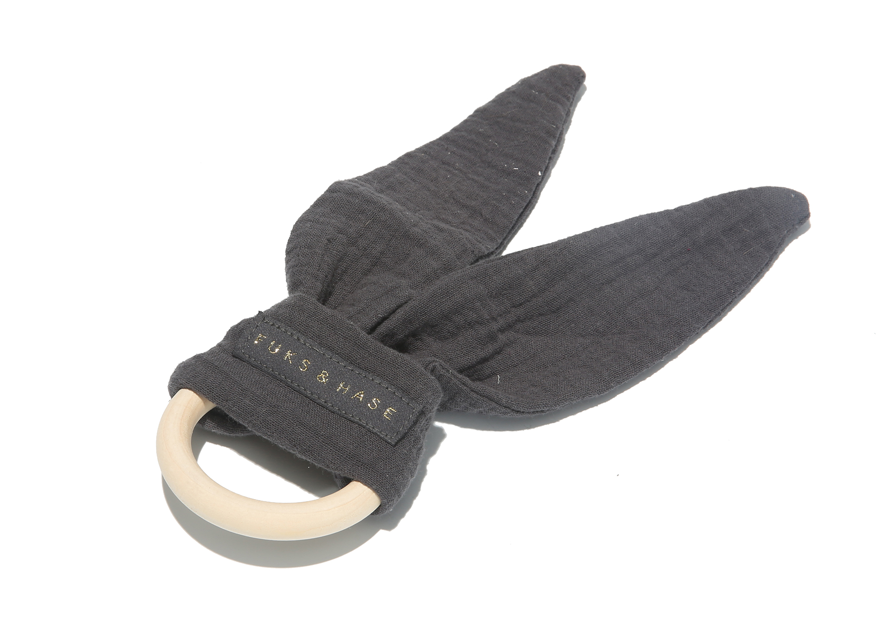 Was bei FUKS & HASE natürlich nicht fehlen darf ist dieser süße Hasen-Greifring für Babys.